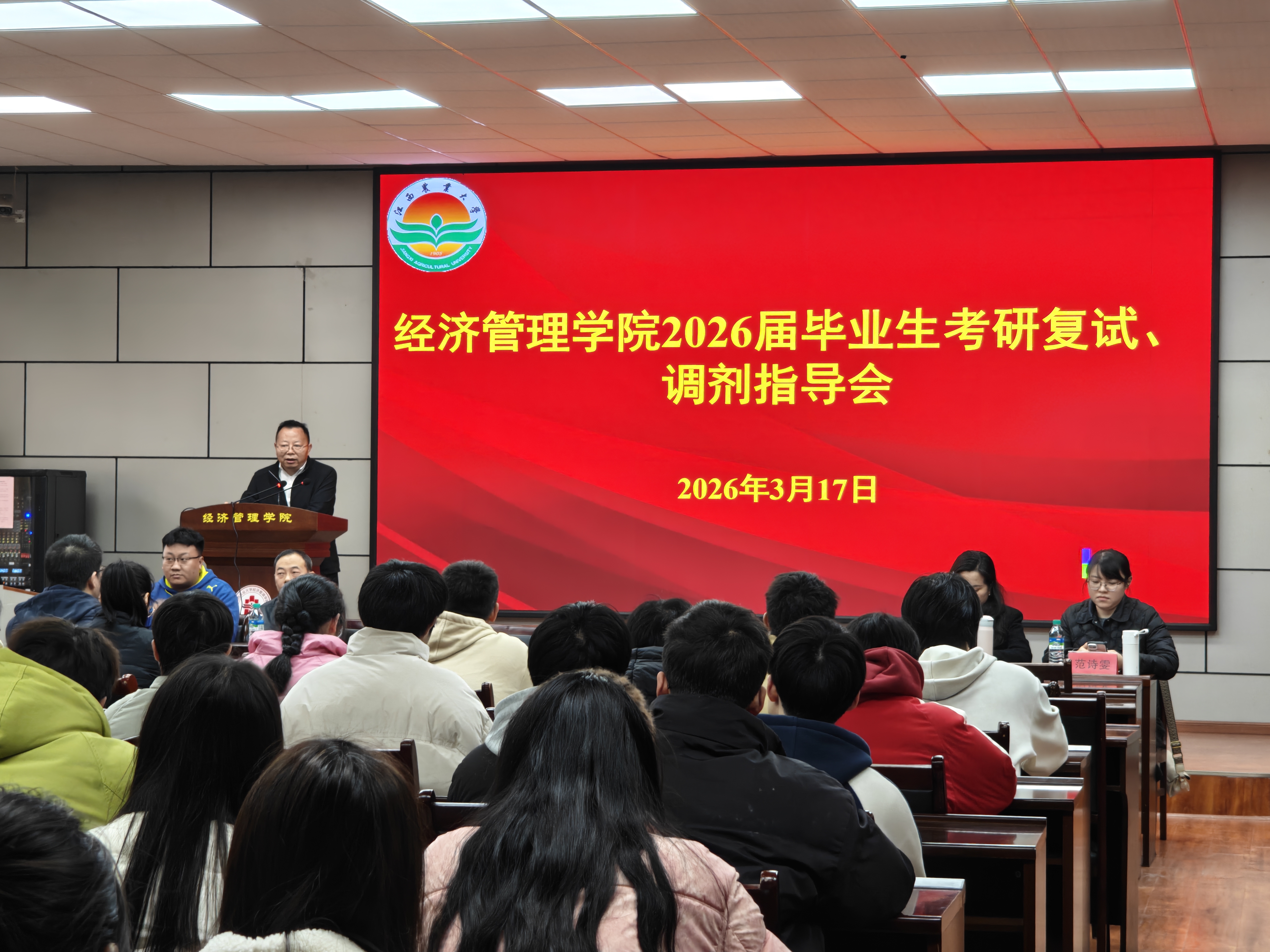 为帮助2026届考研学生科学备战复试、合理规划调剂,3月17日下午,经济管理学院在经世楼207召开2026届毕业生考研复试与调剂指导会。学院班子成员、辅导员、教师代表、硕士研究生代表及2026届考研上线毕业生参加活动。