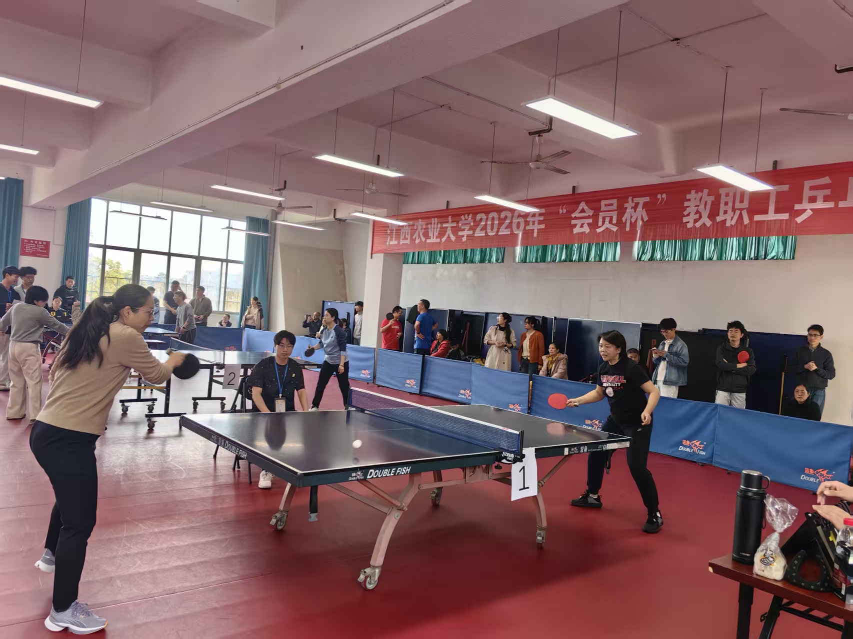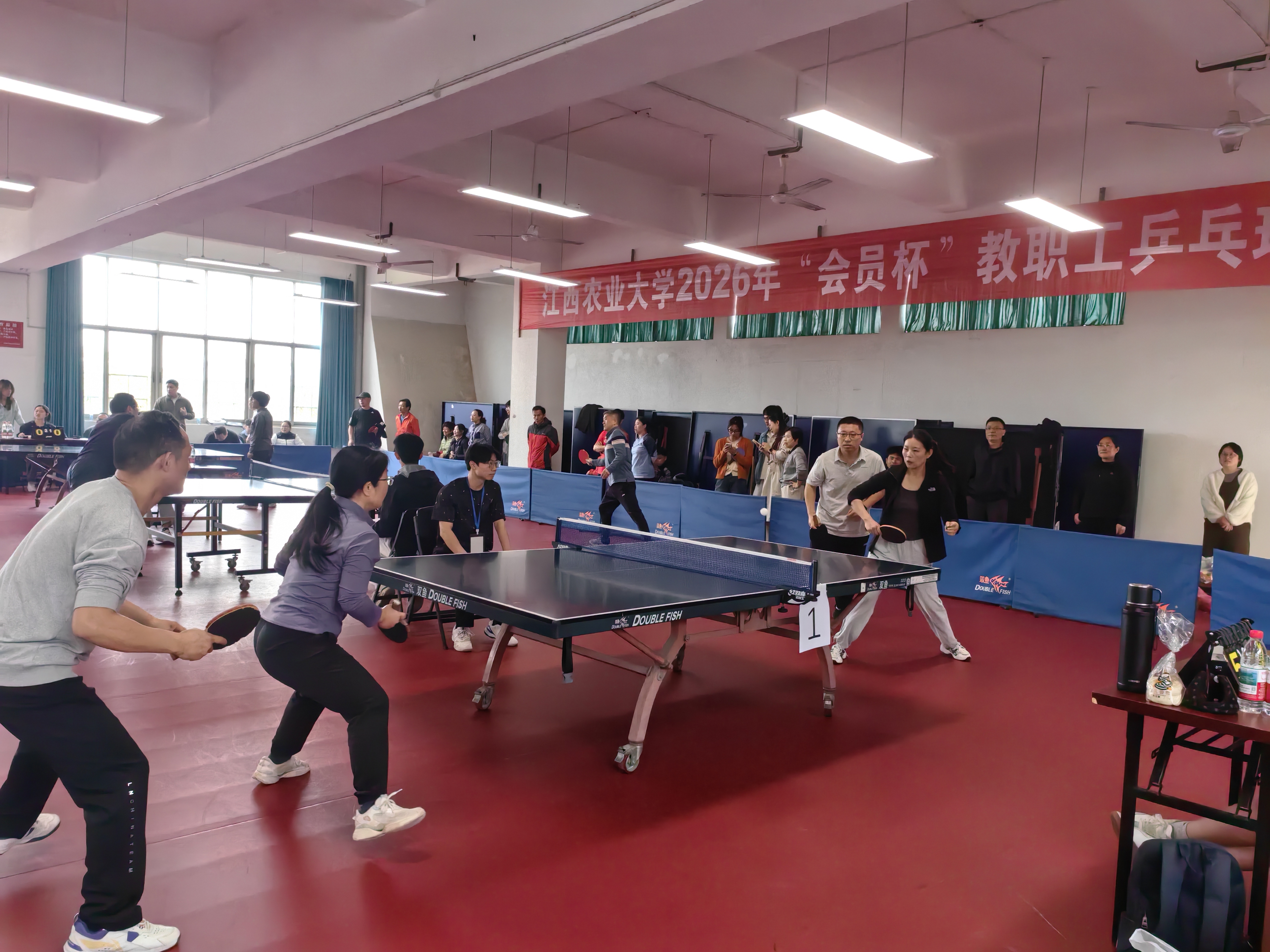 2026年3月28日-29日,由江西农业大学校工会举办的教职工“会员杯”乒乓球比赛在学校体育馆圆满落幕。全校共有20支代表队参赛,本次比赛采用“五场三胜制”形式,双方队员按男单、女单、混双、男单、女单的顺序依次出场对阵比赛,我院教职工积极参加学校“会员杯”乒乓球比赛。参赛队员赛出了友谊、赛出了风格、赛出了水平,用顽强拼搏的精神展示了经管学院教职工奋发向上、团结进取的良好精神风貌。